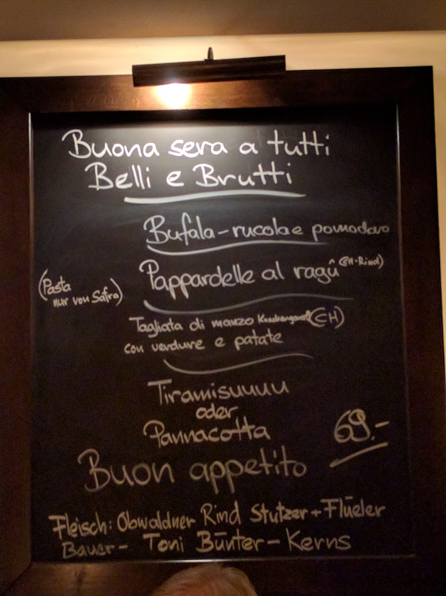 The meal closes on a simple but pleasing note with desserts and coffee. Schoggi Mousse provides a smooth, chocolate-forward finish without being overly sweet, while a classic Espresso rounds off the dining experience in a clean, authentic way. Altogether, the menu feels cohesive and confident, offering enough variety to satisfy different tastes while maintaining a clear culinary identity centered on quality ingredients and balanced execution.